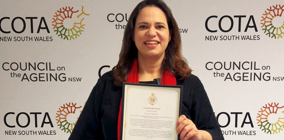 We are proud to share that our team has received recognition in the NSW Parliament for our work advocating with and for older people in NSW. Thanks to Kobi Shetty MP, Member for Balmain, for her words of support and presentation of a community recognition statement.