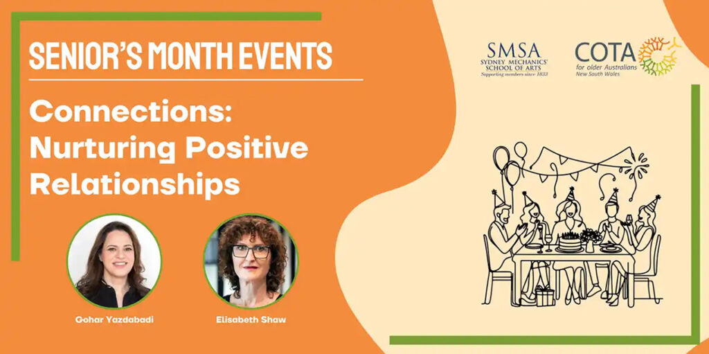 How do meaningful relationships impact our well-being as we age? Elisabeth Shaw, CEO of Relationships Australia NSW, and Gohar Yazdabadi, CEO of COTA NSW, explore the emotional and physical benefits of strong social connections and share practical tips for building lasting relationships in later life.